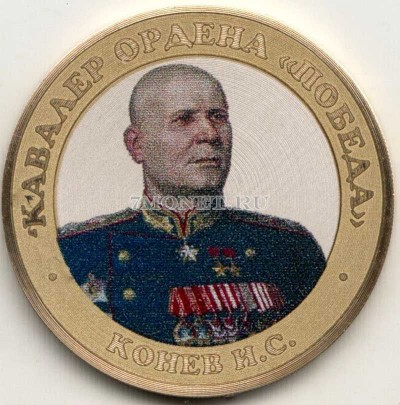 монета 10 рублей 2016 год, Маршал Конев, цветная, неофициальный выпуск