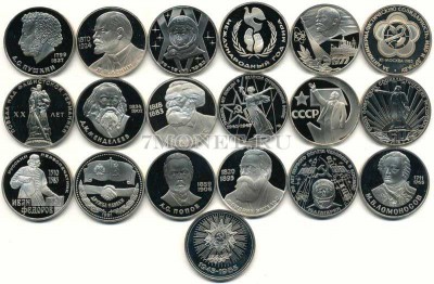 набор из 19-ти монет 1 рубль новоделы ( 1965-1987 гг ) PROOF