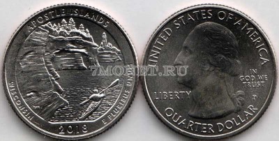 США 25 центов 2018P штат Висконсин Национальные озёрные побережья островов Ап...