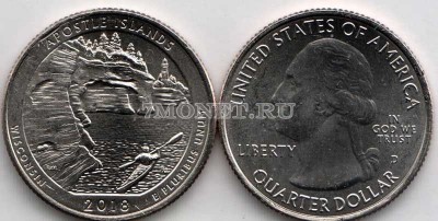 США 25 центов 2018D штат Висконсин Национальные озёрные побережья островов Ап...